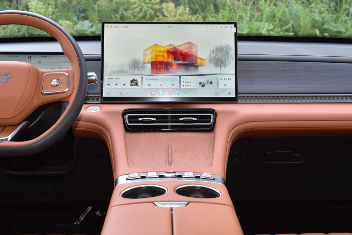 内饰方面,整体设计走的是中规中矩的风格,没有太多花哨的装饰。中控台上15.6寸的中控屏幕挺吸引眼球,特别是它支持左右10度的智能转动,这在很多同级别车型中还挺少见的。副驾驶在导航或者控制多媒体的时候,屏幕自动偏向一侧,操作起来更方便,这种小细节其实让人觉得挺贴心。用料方面呢,虽然没有用真皮,但仿皮材质的质感也还可以,摸起来触感柔软,耐脏耐用,对于日常家用来说足够了。各个按键布局合理,常用功能都能找到,不用东找西找,也避免了触屏过度依赖带来的操作不便。